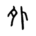 附注《說文新證》:「甲骨文『外』只作『卜』,學者或以為省『夕』。其實『外』字本義係借卜兆別內外,甲骨文的卜兆有一定的規律,以豎形的兆幹為中界,橫形的兆枝所向為內,另一面為外,因此甲骨文以『卜』為『外』,金文加『月』聲,『月』一定在『卜』形的外側。春秋晚期金文『月』形簡化成『夕』形(月、夕在甲骨文中本同字),《說文》遂誤以為『夕卜於事外』。」
