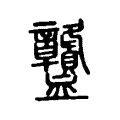 〔䀍〕字是上下结构,可拆字为“贛、皿”。