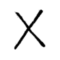 ,亦像交錯之形。隸書二例,前例承篆文而中路交會筆畫略為彎折;後例承自篆文,而中路交會處變作右下折筆。楷書之形承之隸書後例,而中路右下折筆作平直折筆以定體。在六書中屬於指事。