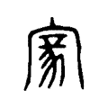 家,居住的地方。字形采用“宀”作边旁,采用省略了“叚”的“豭”作声旁。,这是古文写法的“家”字。