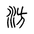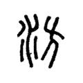 方,相并的两只船。字形下部像两个“舟”字省略合并成的样子,字形上部像两只船总缆在一起的样子。所有与方相关的字,都采用 “方”作边旁。“汸”,“方”的异体字采用“水”作边旁。