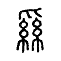 甲骨文像一手拿著二股或三股的絲線。金文上像「爪」形,下像絲繩兩兩相連。甲、金文都像絲握於手中下垂的樣子。篆文變為從糸、?(ㄧˋ yì)聲。從「糸」,指絲;「?」表示音讀。在六書中屬於形聲。