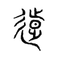 远,辽远。字形采用“辵”作边旁,“袁”作声旁。