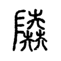 說文》籀文作[⿰⿱⿱大儿⿰⿱大儿⿱大儿],《集韻》作[⿰⿱⿱山大⿰⿱山大⿱山大]。