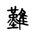 又,《集韻》、《韻會》:囊何切;《正韻》:奴何切 —— 𡘋同「儺」。集韻》:難,卻除凶惡也。周禮・春官・占夢》:遂令始難歐疫。夏官・方相氏》:率百隸而時難,以索室驅疫。禮・月令》:季春,命國難。【又】季冬,命有司大難。