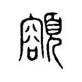金文與篆文構形相同,《說文‧頁部》:「頌,皃也。从頁、公聲。」。「頌」是「容」的本字,「皃」是「貌」的本字,即今之「容貌」。在六書中屬於形聲。《說文》「頌」的籀文寫作「」,上博簡〈從政甲篇〉:「亡(無)以頌(容)百眚(姓)」,正是借「頌」為「容」。篆文「頌」從頁、公聲,籀文「」從頁、容聲。從頁,表示與頭部顏面相關;從公、從容,都是表示音讀,是不示義的聲符,本義是容貌、儀容。在六書中屬於形聲。